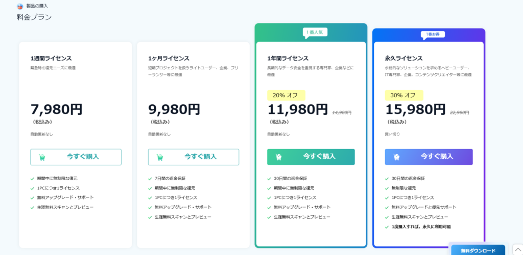 気になったのは一番安い「1週間ライセンス」他のライセンスで価格差が小さいことですね。